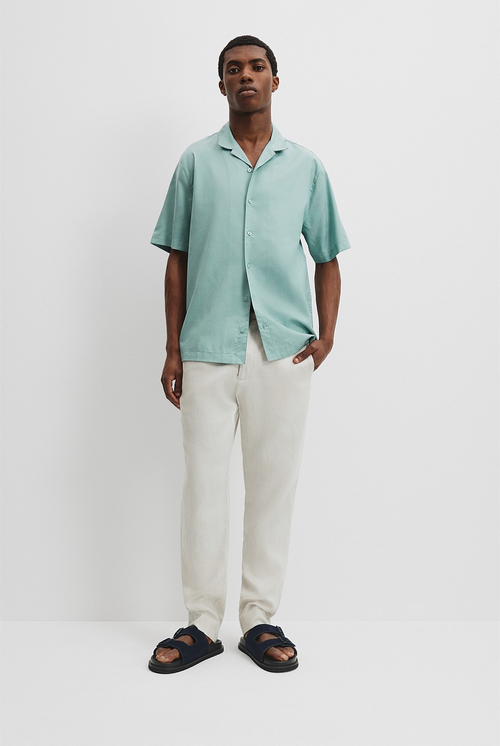 Australian Cotton Short Sleeve Revere Jacquard Shirt