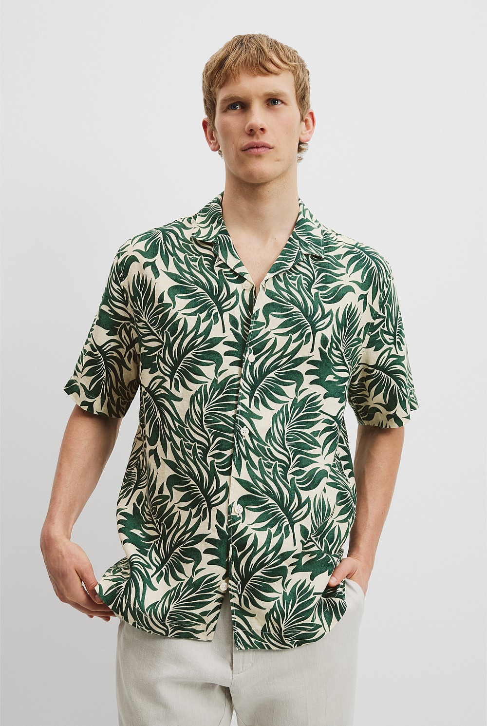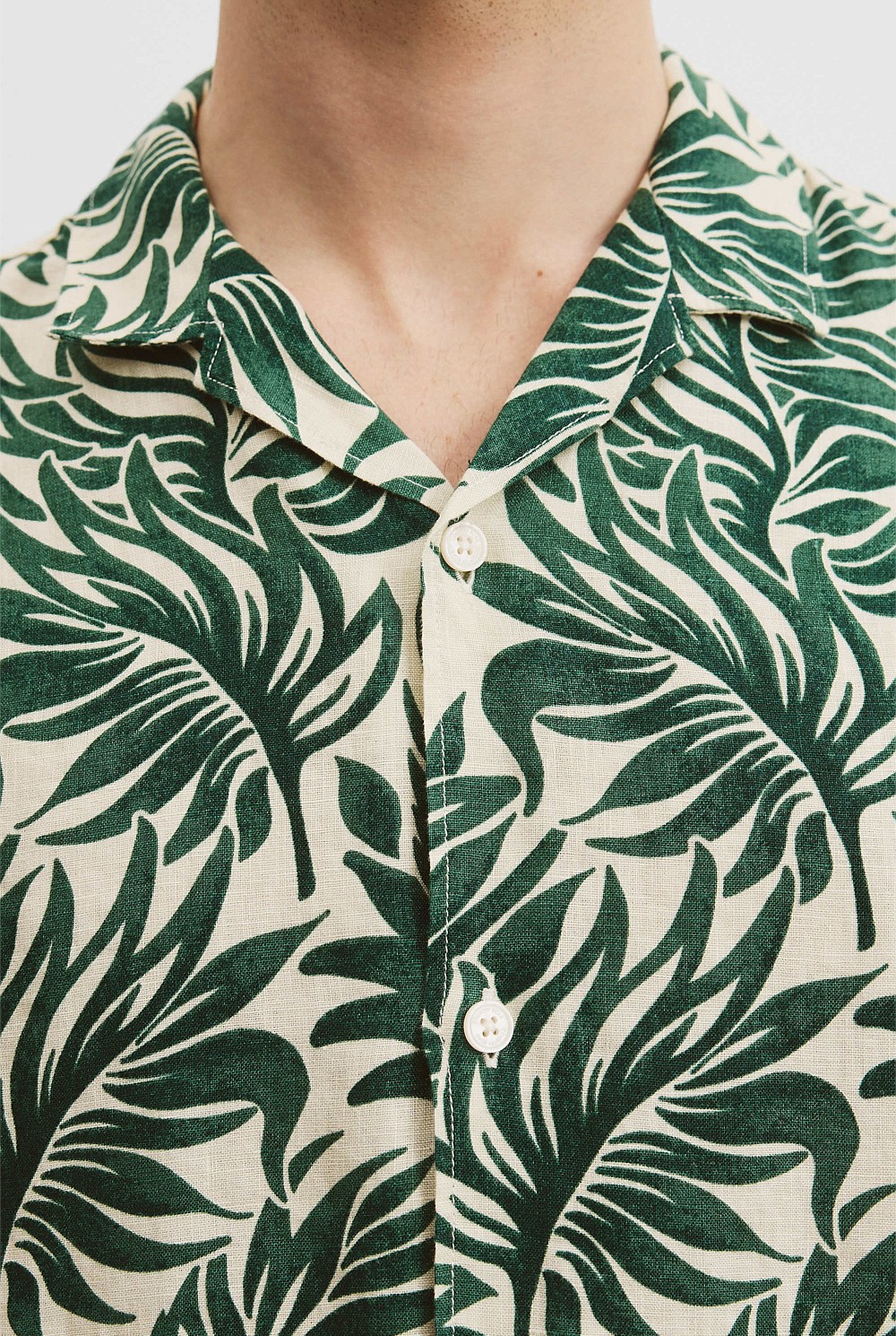 Organically Grown Linen Short Sleeve Leaf Print Shirt