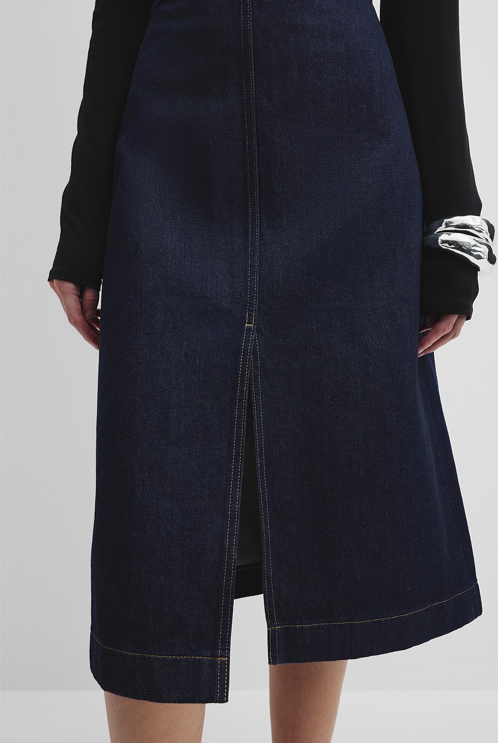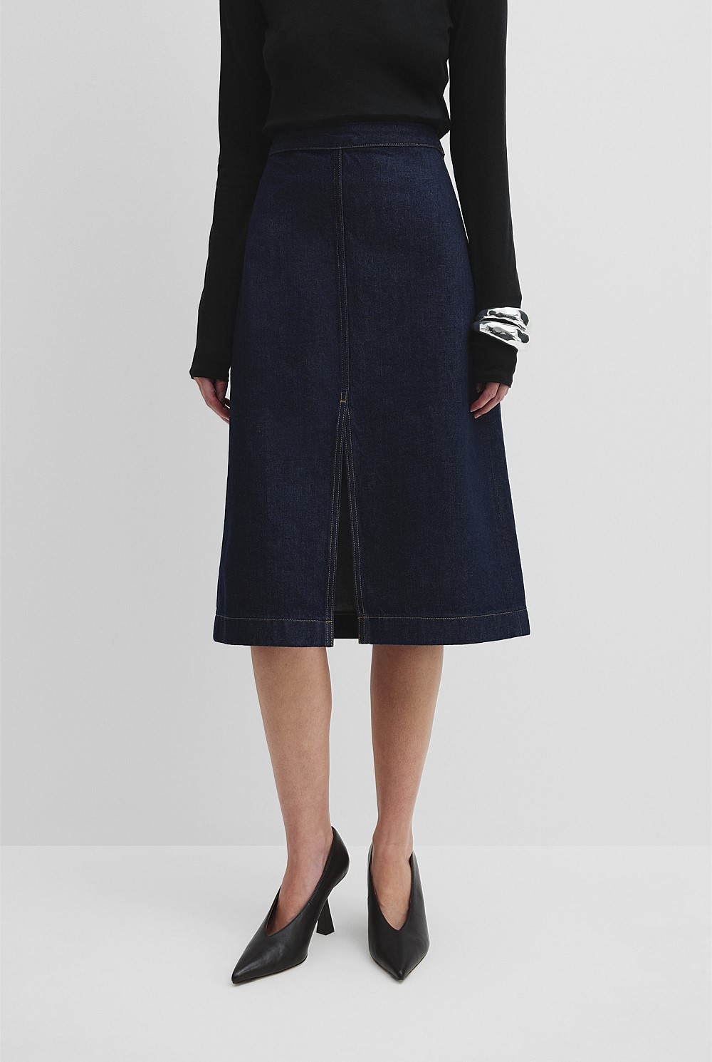 Denim Split Front Skirt