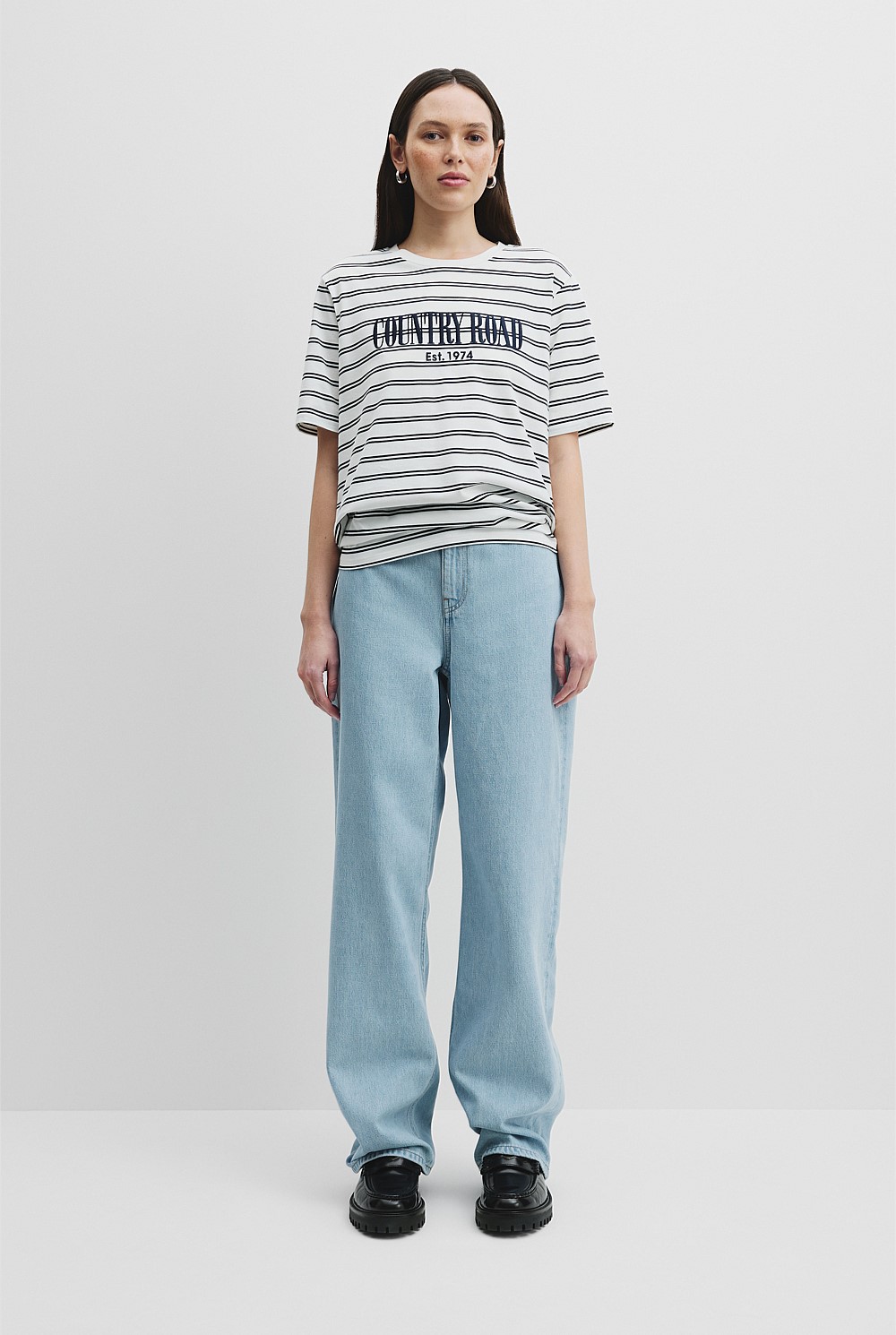 Australian Cotton Stripe Short Sleeve Relaxed T-Shirt