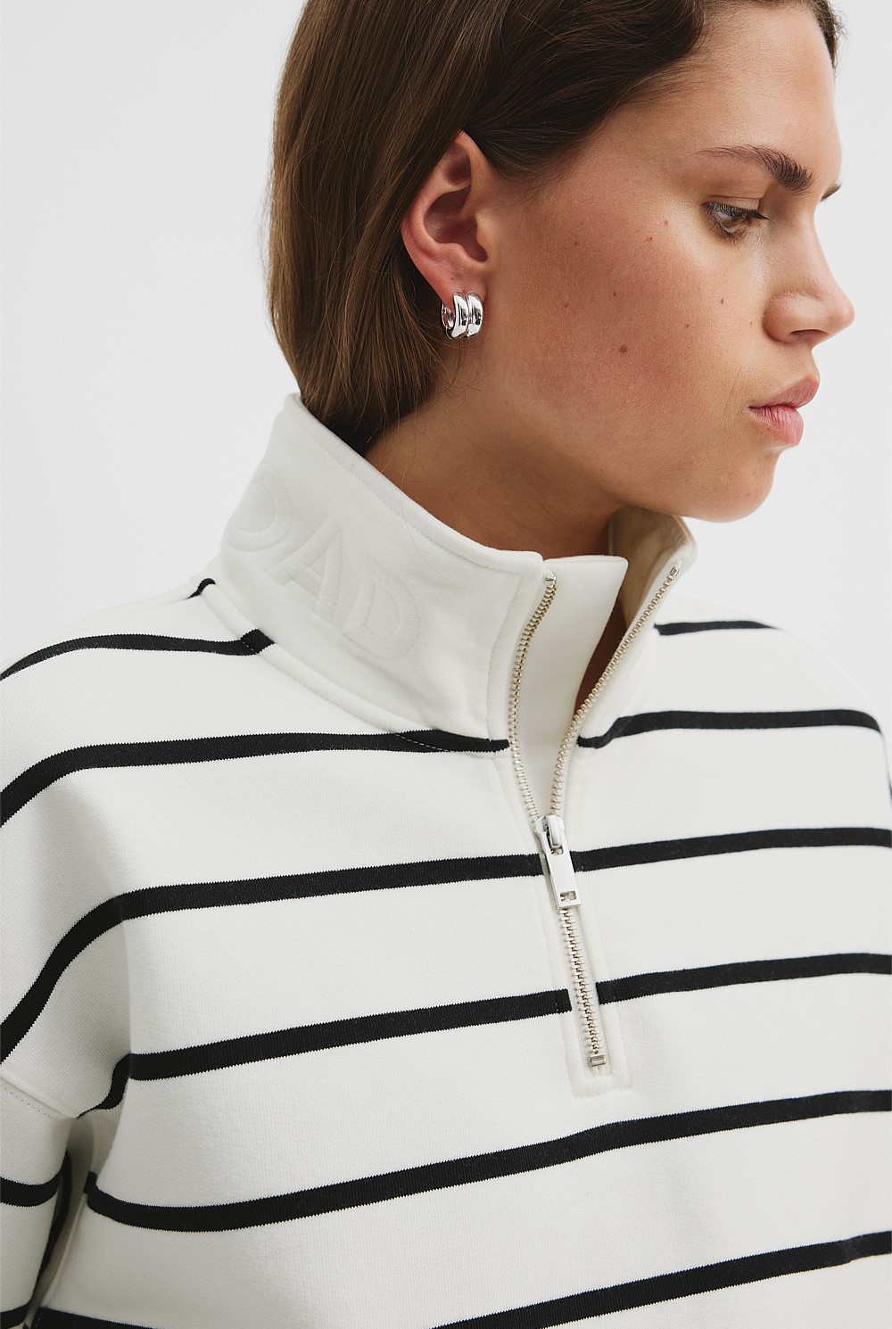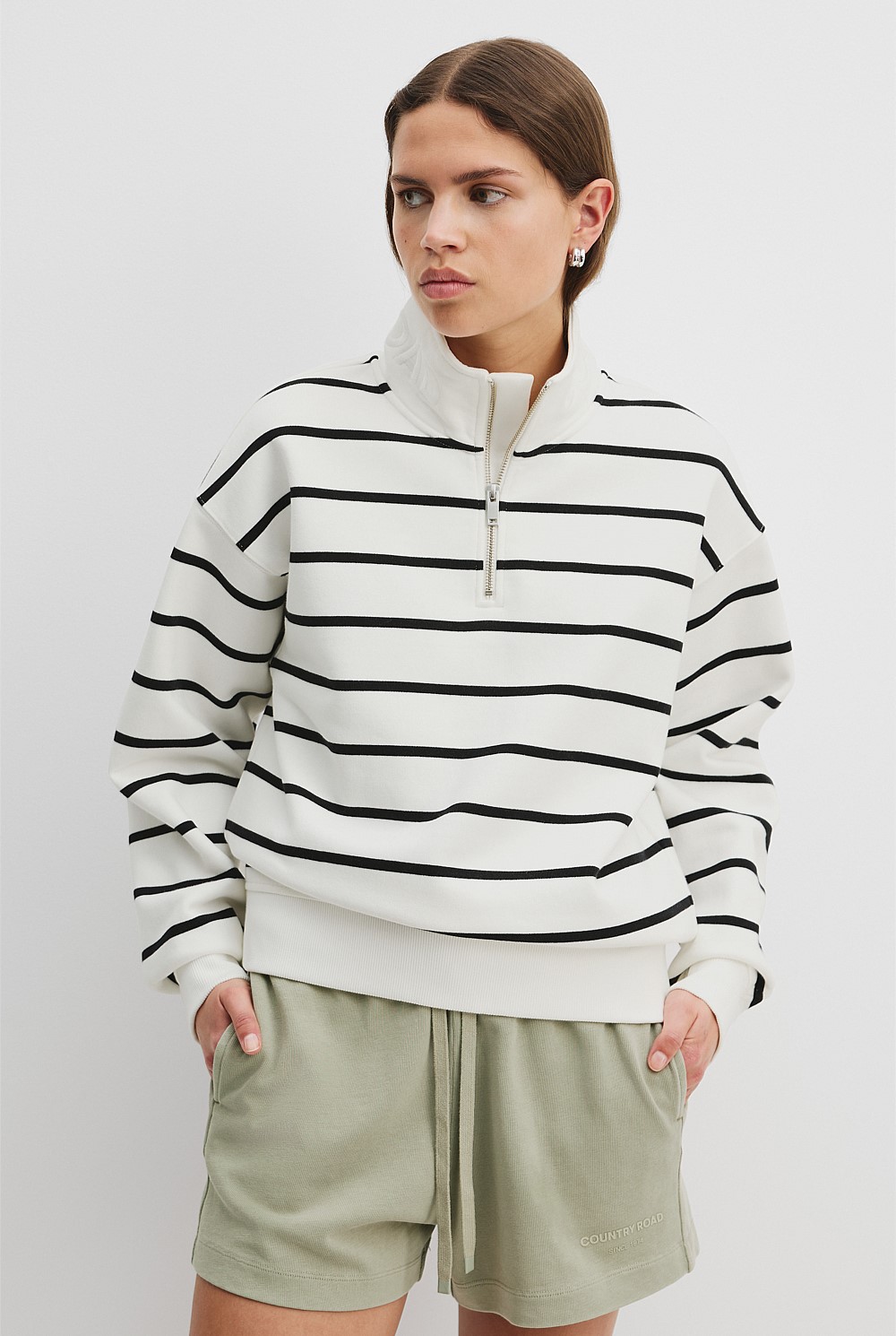 Australian Cotton Stripe Zip Collar Sweat