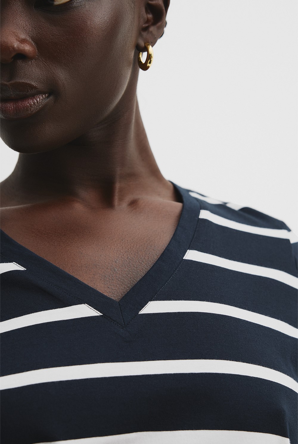 Australian Cotton Stripe V-Neck Relaxed T-Shirt